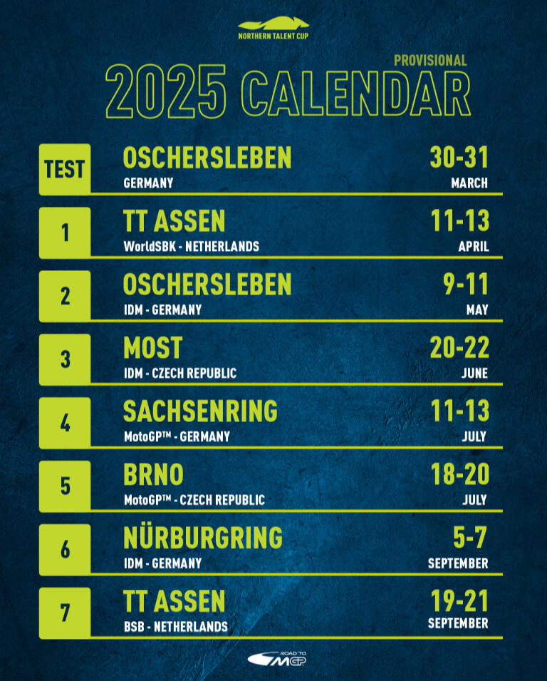 In diesem Jahr fuhr ich im Kiefer Racing Team und nahm zum ersten Mal am Northern Talent Cup teil. Zu Beginn lief es ganz gut, mit Fortschreiten der Saison jedoch hatten wir immer mehr technische Probleme mit dem Motorrad und der Abstimmung, sodass ich am Ende nur den 8. Gesamtrang einfahren konnte.2025